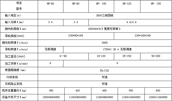 HF系列單工位(單磨頭)外圓拋光機(jī)基本介紹: